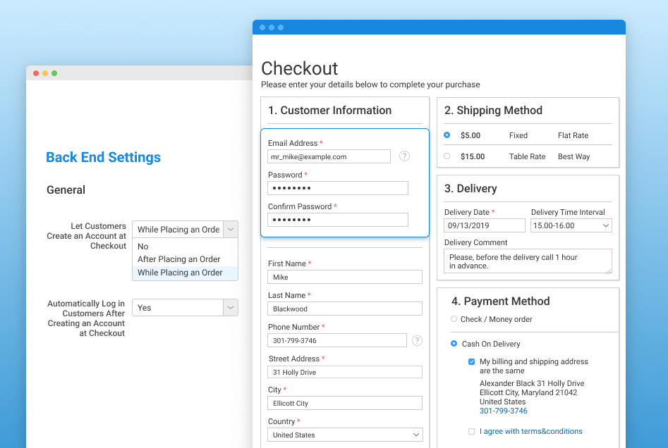 - New ability to set a password and register an account while placing an order was added.