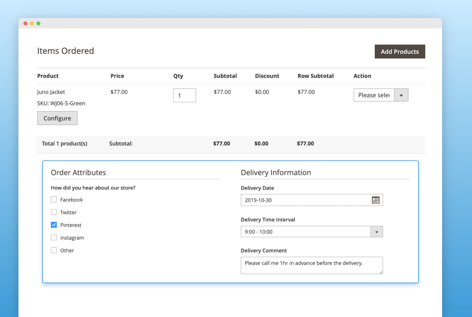 - Display delivery date and time options, enable Order and Delivery comments