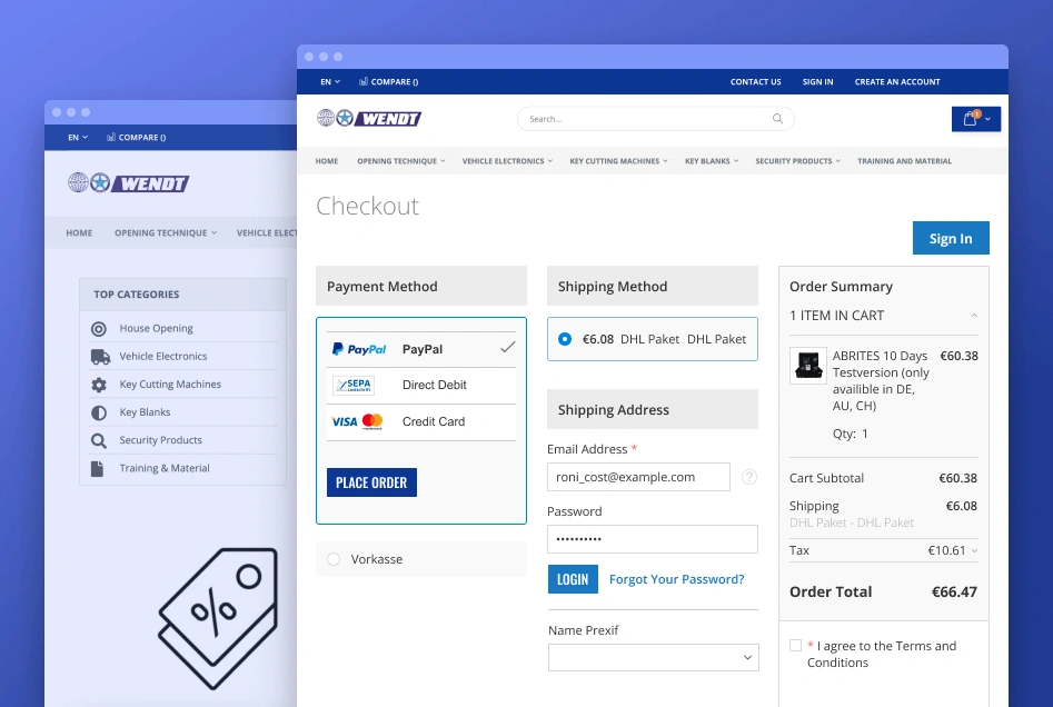 Let shoppers authorize directly from the checkout page. The extension provides your prospects with a quick and easy registration during checkout. In addition, you can configure the extension to save all entered data for the next visit.